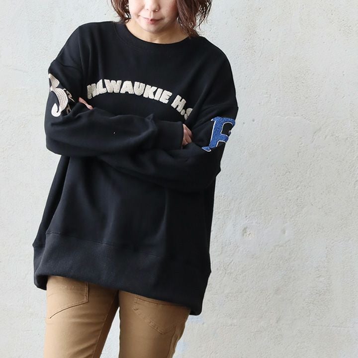 過ぎないアソビが光る一着。 スウェット トレーナー 長袖 レディース クルーネック 綿100 コットン 裏毛 サガラ刺繍 刺繍 大きいサイズ ゆったり 体型カバー カジュアル 春 秋 冬 パティ KAKELA&TRANQUIL カケラ&トランクイル