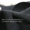 程よい厚みで着始めからくったりと柔らかく滑らかな質感のコットン100%裏毛スウェット地。編地による伸縮性があり、透け感はありません。