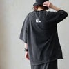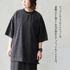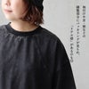 程よく厚みがあり、サラッと柔らかな綿100%の天竺地。ケミカルウォッシュ特有な不規則なムラ感があります。編地による伸縮性がややあり、透け感はありません。
