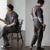 【モデルコメント】中は、薄手のカットソーの重ね着くらいはしやすそうです。程好くゆとりがありました。 【客観的コメント】まもるくらいの体型なら、Mサイズで問題のないサイジングだね。