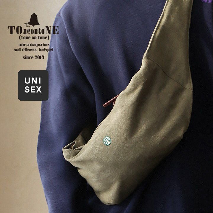 【アウトレット】【B品傷あり】バッグ ボディバッグ ショルダーバッグ キャンバス生地 しっかり 丈夫 ワンショルダー クッションパッド入り レザーストラップ 消臭効果 旅行バッグ 一泊二日 メンズ レディース 黒 カジュアル パティ TOneontoNE トーン