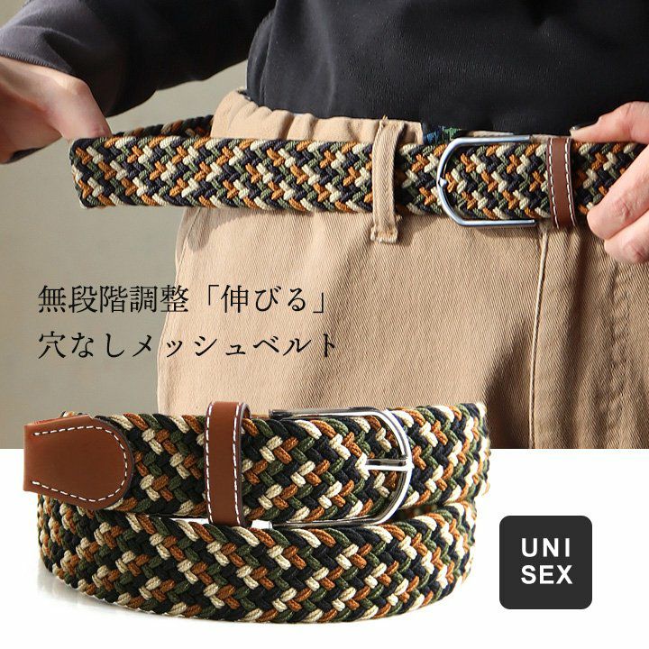 【アウトレット】ベルト メッシュベルト 穴なし 編み込みベルト 伸縮 ストレッチ フリーサイズ 太さ 選べる ミックスカラー無段階調整 あみこみ 伸びる のびる レディース メンズ おしゃれ レザー パティ