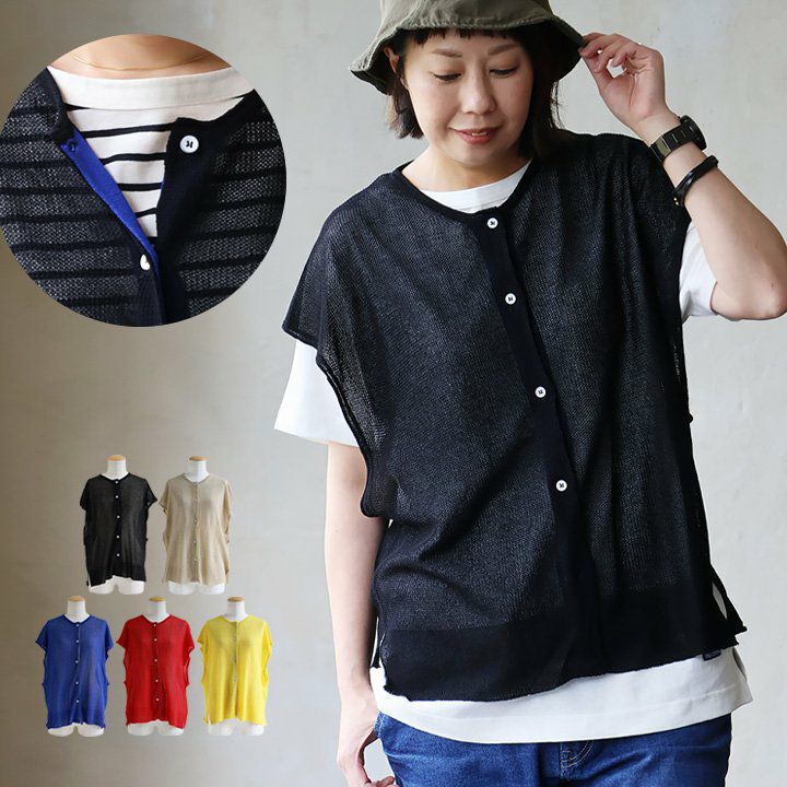 真夏の重ね着が「涼しく」見違える。 【メール便50】 ベスト レディース クルーネック シアーニット 重ね着 無地 レーヨン ナイロン 薄手 涼しい 軽い ゆったり 大きいサイズ 体型カバー カジュアル 夏 パティ GENTIL ジャンティ