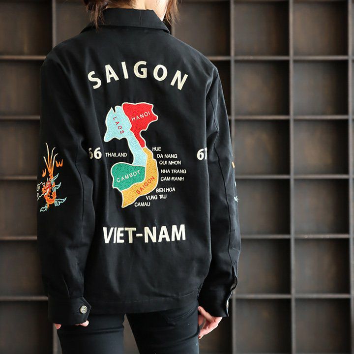 ちょっと抜けた感じと、力強さが良い塩梅。 ベトナムジャケット ベトジャン メンズ レディース スーベニア 刺繍 トラ 虎 アニマル 龍 綿100 コットンツイル 裏地付き しっかり生地 軽い ハリ ゆったり 大きいサイズ カジュアル ヴィンテージ パティ HOUSTON ヒューストン