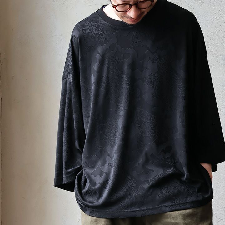 カジュアルにスッとハマる、嫌味のない柄と透け感。 Tシャツ 5分袖 メンズ レディース クルーネック レース ポリエステル ジャガード 花柄 伸縮性 軽い ゆったり 大きいサイズ 体型カバー カジュアル 夏 パティ