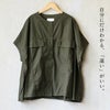 自分にだけわかる、「違い」がいい。 シャツ テントラインシャツ 半袖 レディース ノーカラー 日本製 コットンツイル 薄手 軽い しっかり生地 タフ ポケット ゆったり 大きいサイズ 体型カバー カジュアル 夏 パティ