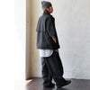 【モデルコメント】骨盤で穿きました。全体的にしっかりとゆとりがあります。中は、スキニーパンツを合わせても問題はありませんね。 【客観的コメント】裾は地面に少し擦れる丈の長さです。ゆとりはありながらも、良いシルエットで穿けていましたね。