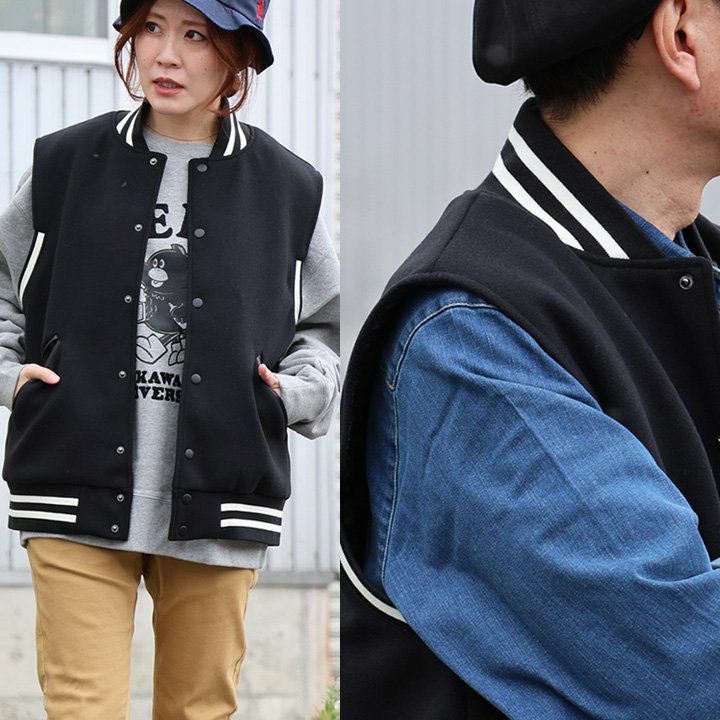見た目はしっかり、着心地はライトなスタジアムベスト。 ベスト スタジアムベスト メンズ レディース 重ね着 ポリエステル 配色ライン 裏地 薄中綿 キルティング 軽い ゆったり カジュアル ストリート 秋 冬 パティ modem Design モデムデザイン