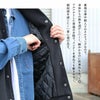 【モデルコメント】中は、カットソー2枚くらいは合わせても問題はありません。程好くゆとりがあって、着るならこのサイズが良いですね。 【客観的コメント】お尻はほとんど隠れる着丈の長さです。バランスの良いシルエットで着れていましたね。