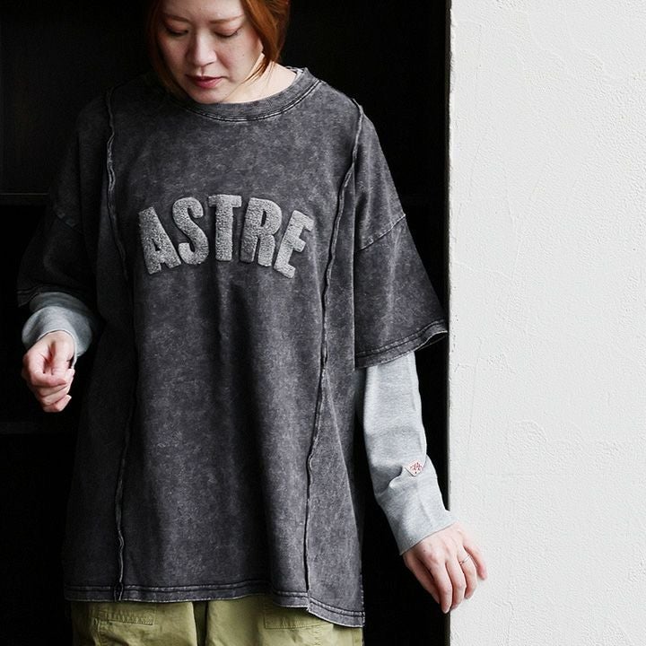 6. 【メール便50】 Tシャツ 5分袖 レディース クルーネック ロゴ サガラ刺繍 ピグメント 褪せ色 綿100 コットン 天竺 大きいサイズ 体型カバー カジュアル メンズライク ヴィンテージ パティ KAKELA&TRANQUIL カケラ&トランクイル