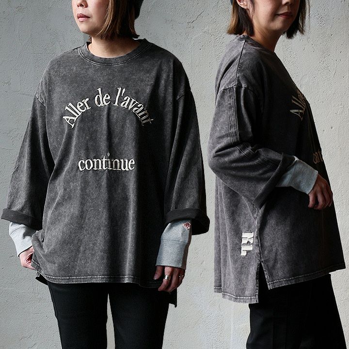 悩んだ時に、「らしく着られる」私好みのカットソー。 【メール便50】 カットソー 長袖 レディース クルーネック 綿100 コットン 褪せ色 ピグメント 配色 ロゴ刺繍 大きいサイズ 体型カバー ゆったり カジュアル 春 秋 冬 パティ KAKELA&TRANQUIL カケラ&トランクイル