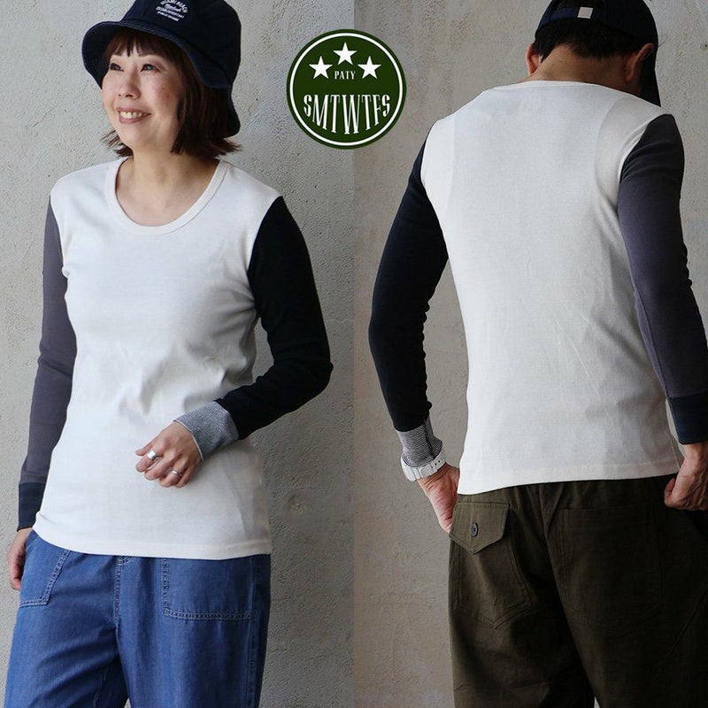 3. 【アウトレット】 【傷アリ】 カットソー 長袖 9分袖 ロングtシャツ 重ね着 すっきり フィット 着痩せ しっかり 丈夫 ストレッチ 柔らかい レディース メンズ 綿100% コットン ロンT インナー トップス tシャツ ロング丈 クレイジー 配色 パティ PATY パティ