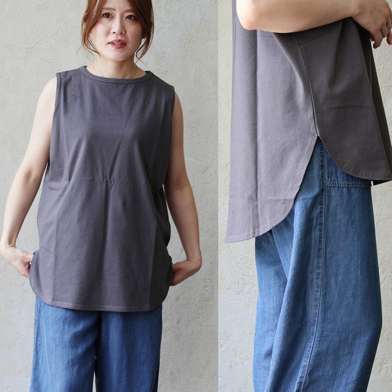3. 【アウトレット】 【B品傷あり】タンクトップ ロング レディース 重ね着 胸元 お尻 カバー しっかり 綿100% コットン ロング丈 ワイド ストラップ ボーダー 吸水 薄手 軽い 大人 すっきり 春 夏 秋 冬 安心 パティ Souple スプル