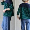 【アウトレット】 【B品傷あり】着痩せ カットソー パネルボーダー ボートネック ワイド 七分袖 7分袖 レディース プルオーバー 重ね着 軽い しっかり 丈夫 綿100 コットン すっきり 二の腕 カバー 大人 カジュアル パティ Souple スプル