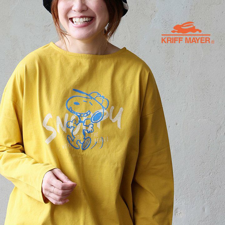 【アウトレット】 【A品】 Tシャツ 長袖 レディース ゆるT コットン 綿100% SNOOPY スヌーピー ロンTEE クルーネック KRIFF MAYER クリフメイヤー