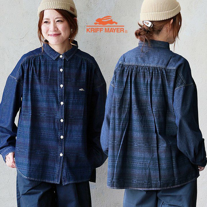 【アウトレット】【B品傷あり】 シャツ 長袖 レディース シャンブレー ギャザー インディゴ デニム ウォッシュ加工 カジュアル パティ KRIFF MAYER クリフメイヤー