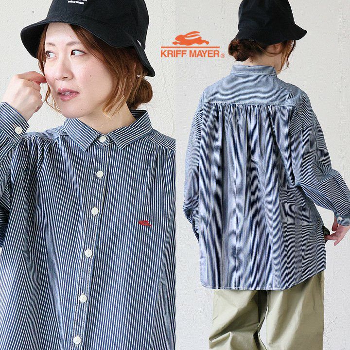 【アウトレット】(A品) シャツ 長袖 レディース ストライプ ワンポイント 刺繍 コットン 綿100 大きいサイズ 体型カバー カジュアル パティ KRIFF MAYER クリフメイヤー