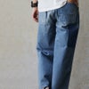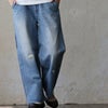 【アウトレット】【サンプル】 デニムパンツ ストレート ワイド レディース ゆる リメイク風 ウエストゴム ボタンフライ ユーズドウォッシュ 綿100% ペインターデニム カジュアル おしゃれ アメカジ ブルート パティ