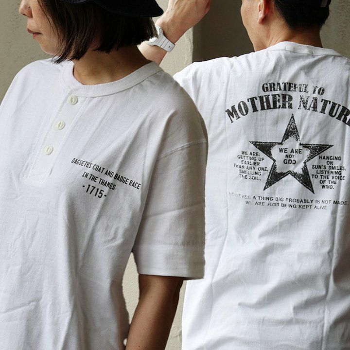 【アウトレット】 【B品】 tシャツ 半袖 ヘンリーネック 丸胴 バインダーネック 【MOTHER NATURE スター star 星】 バック 綿100% メンズ レディース トップス カジュアル おしゃれ ティーシャツ ティシャツ 半袖t 半袖tシャツ テイシャツ シンプル OAR’S オールズ