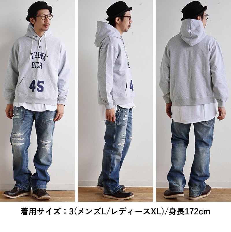 クラシック由来のデザインに、先の長い安心感と着やすさ。 パーカー 長袖 プルオーバー メンズ レディース ヘンリーネック フーディ 裏毛 スウェット ナンバリング プリント 刺繍 カジュアル アメカジ パティ modem Design モデムデザイン