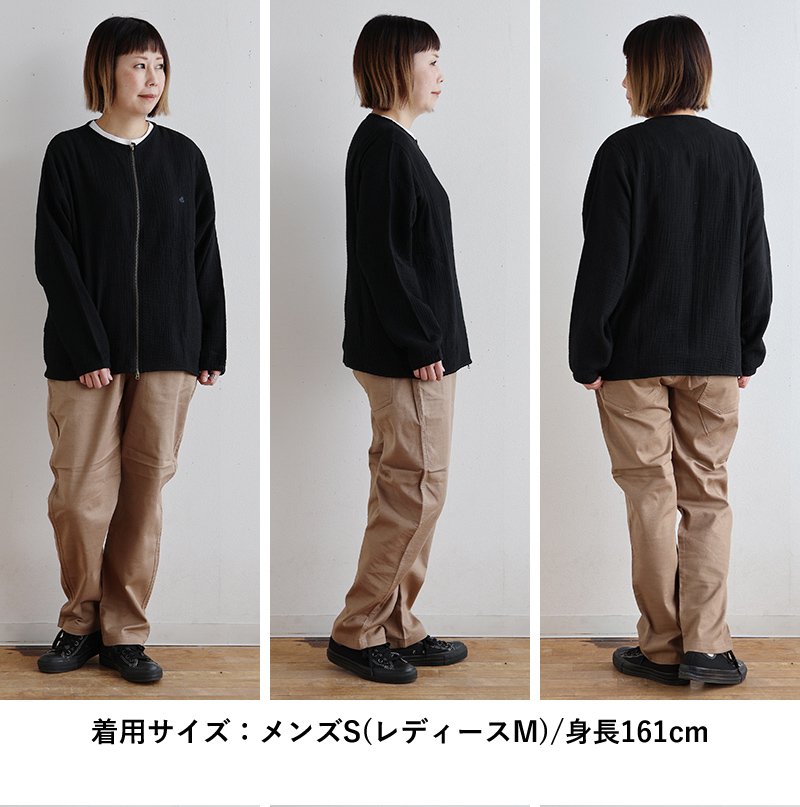 【モデルコメント】中は、カットソー2枚くらいは合わせやすそうです。全体的にしっかりとゆとりのあるサイジングでした。