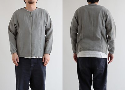 【モデルコメント】中は、厚手のTeeやカットソーくらいは合わせやすそうです。フィット感が出ない程度にゆとりがあって、ジャストサイズって感じでした。