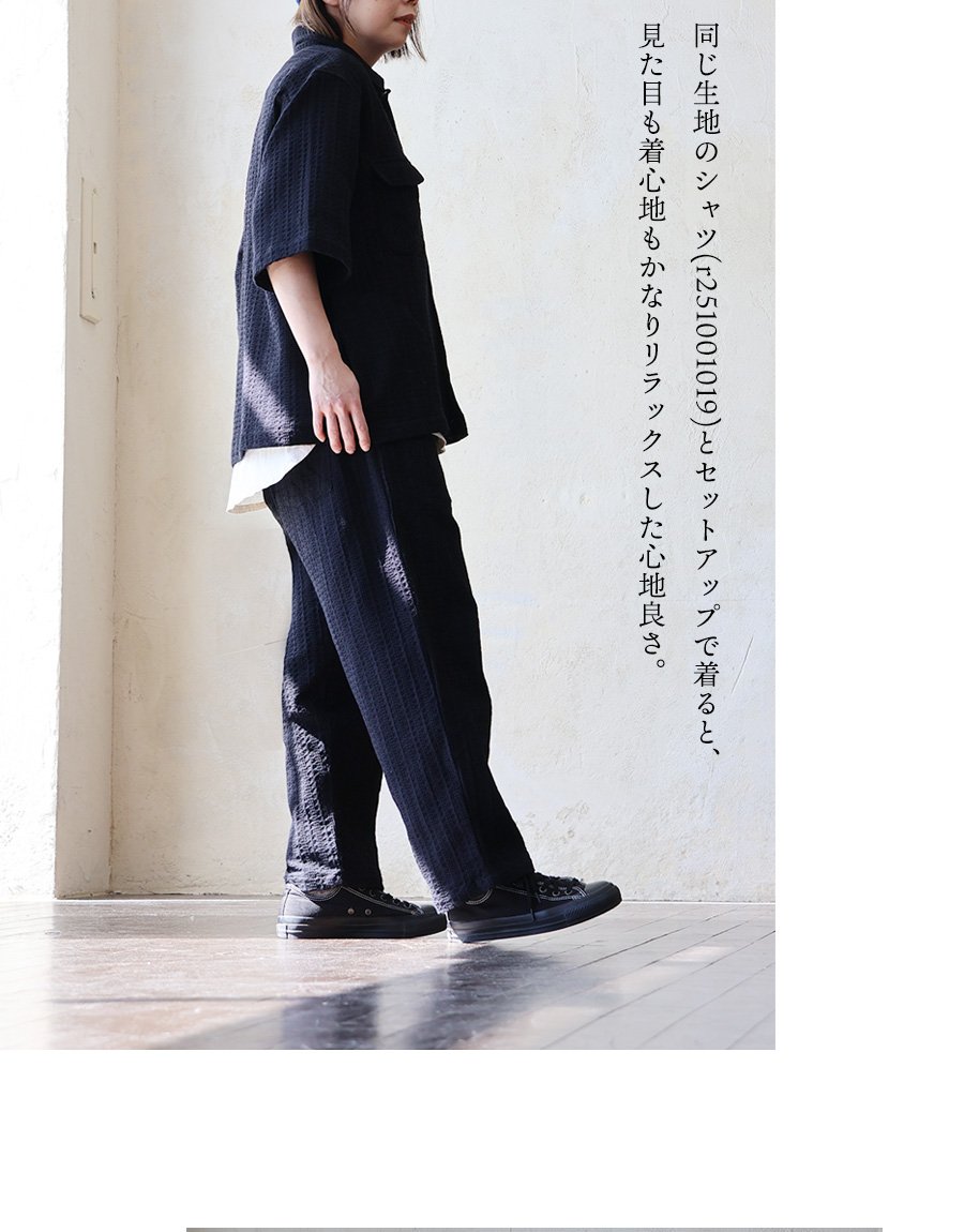 5. SLOW HANDS スローハンズ パンツ テーパード メンズ レディース イージーパンツ ワイド ハンドクラフ ワッフル ドビー織り ウエストゴム 紐 Venice ビーチパンツ カジュアル パティ