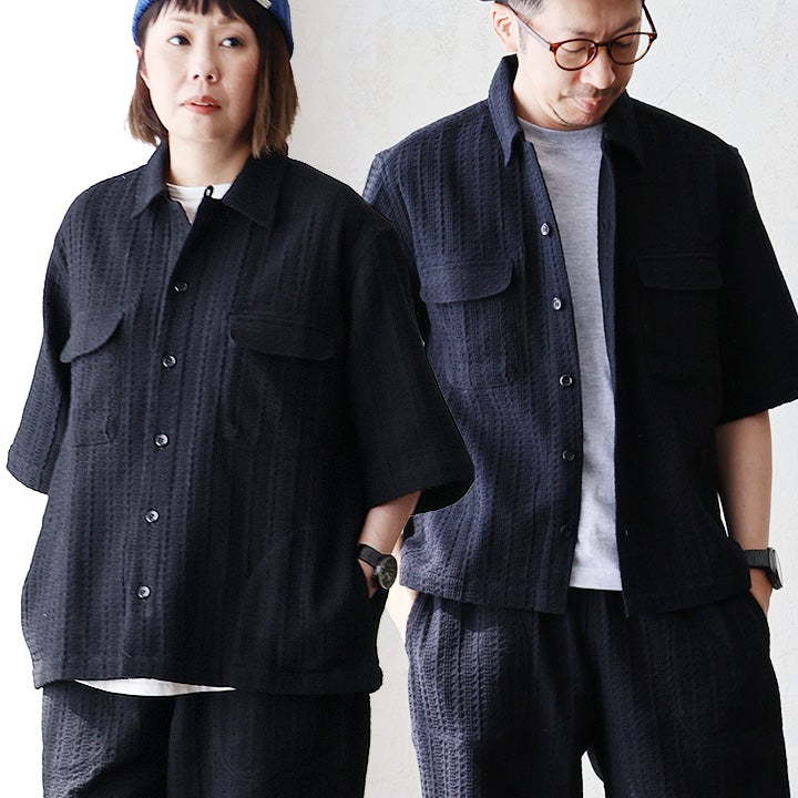 タフなのに涼しい。無地なのに、見応え。 SLOW HANDS スローハンズ シャツ 5分袖 メンズ レディース シャツジャケット ハンドクラフ ワッフル ドビー織り ポケット Venice 半袖 カジュアル パティ