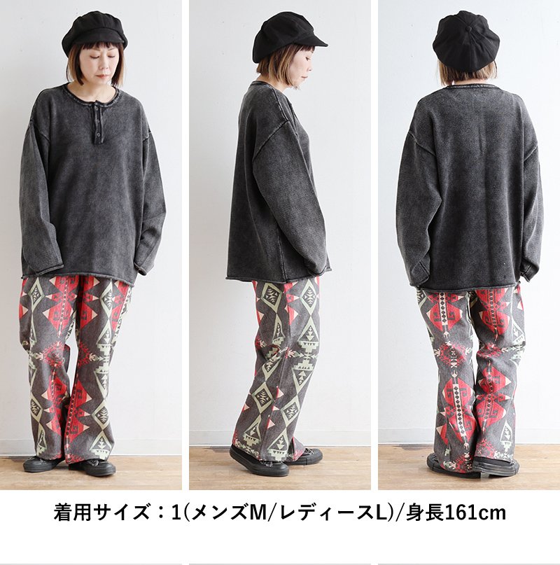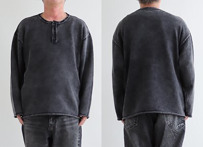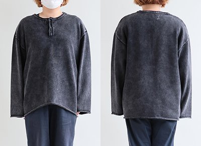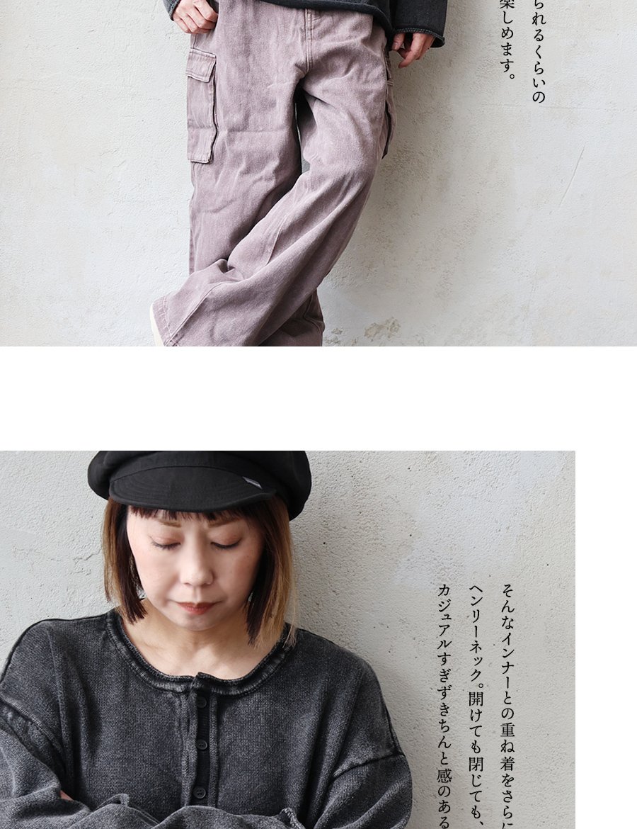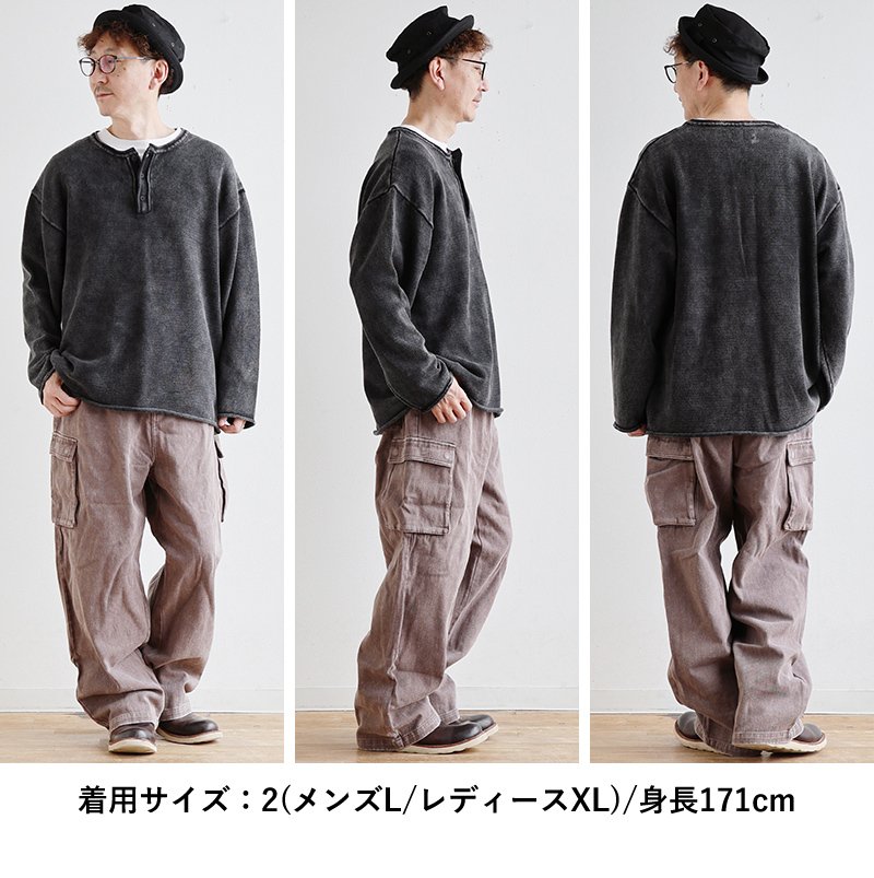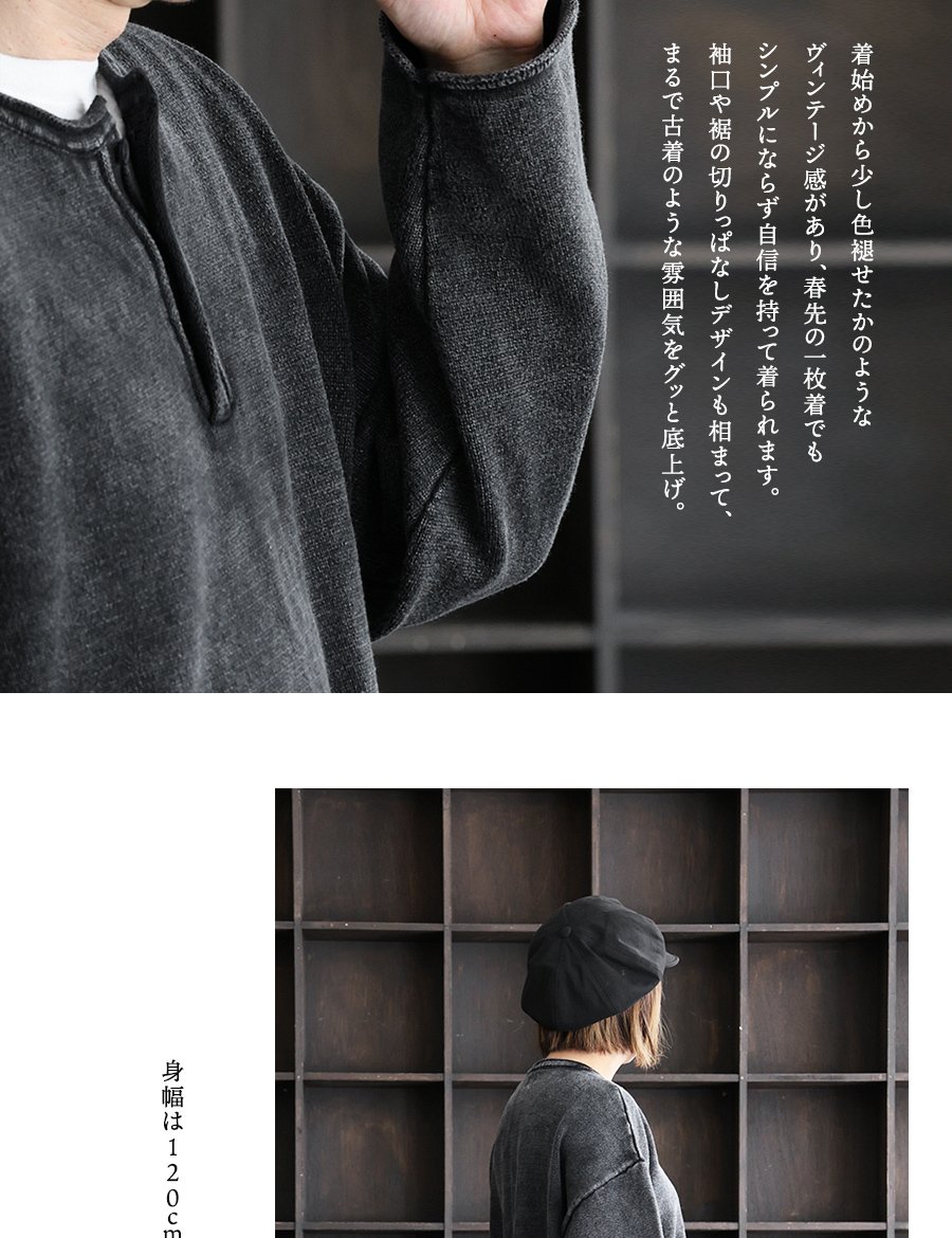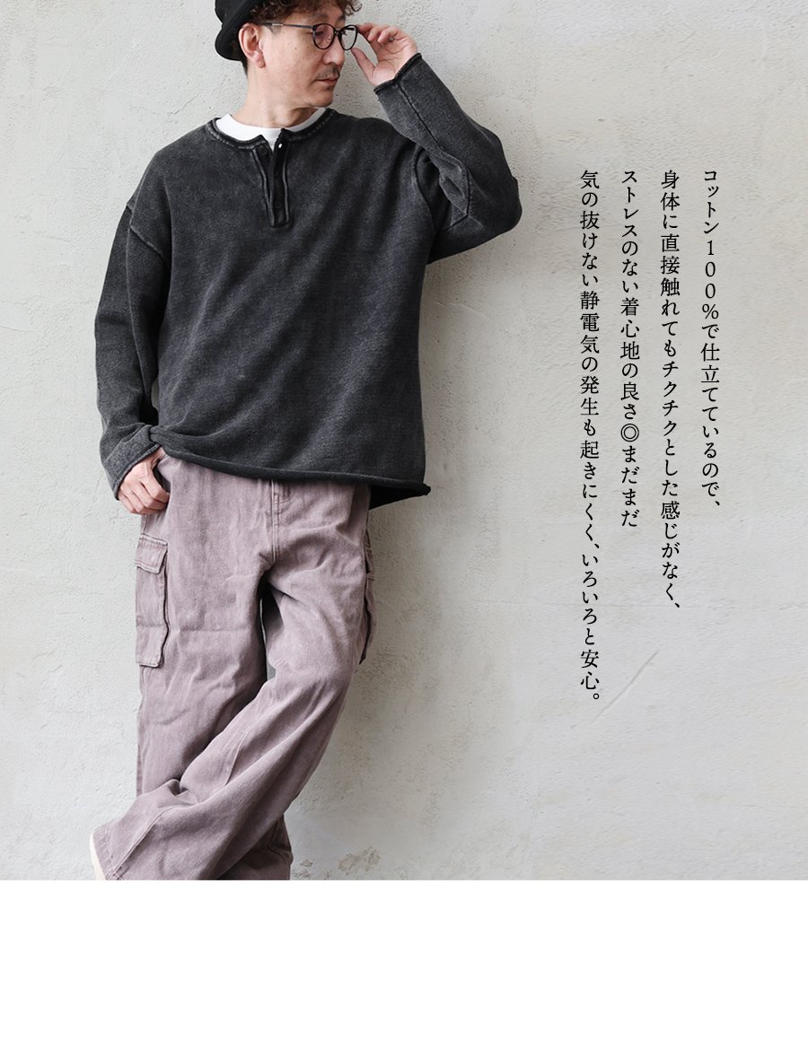 5. ニット 長袖 メンズ レディース ヘンリーネック スウェットライク 綿100 コットン 柔らかい 褪せ色 ピグメント 9ゲージ 軽い ゆったり 大きいサイズ カジュアル ヴィンテージ パティ