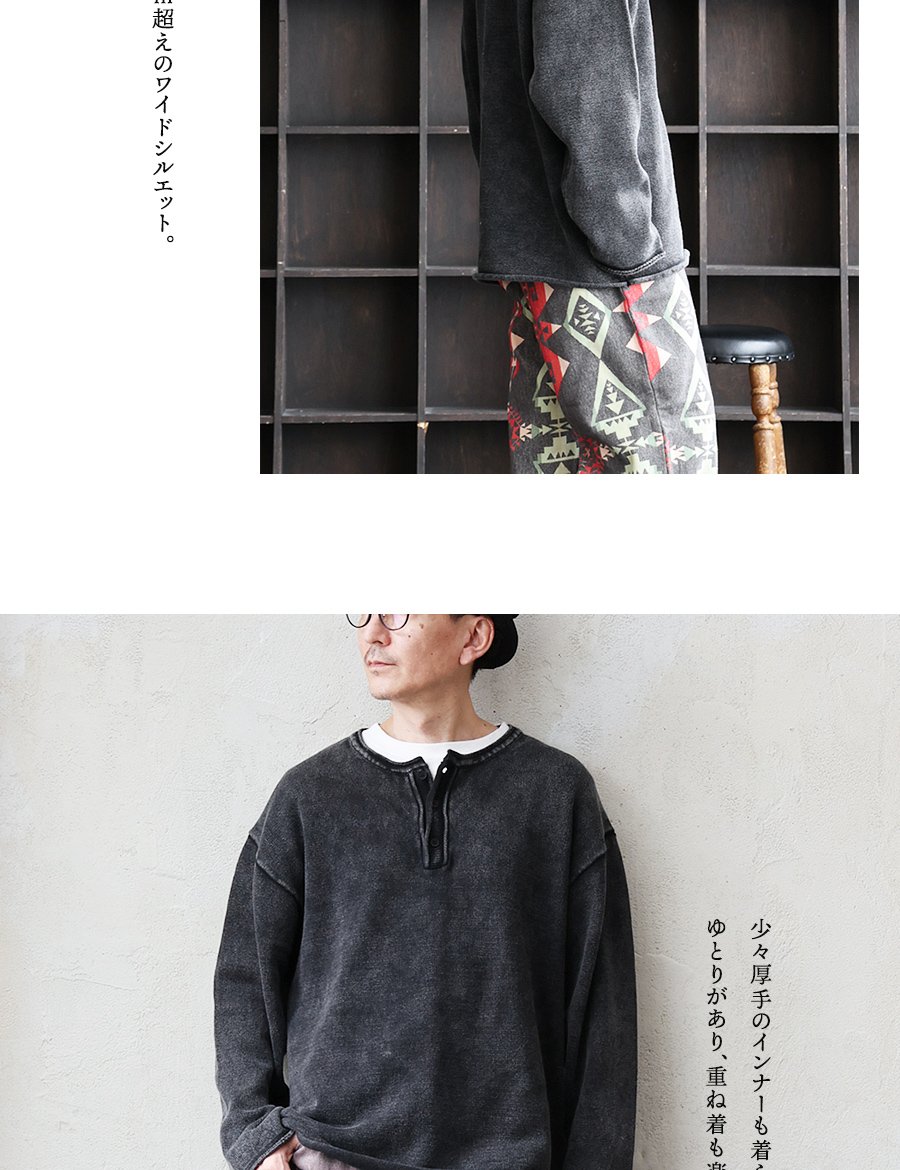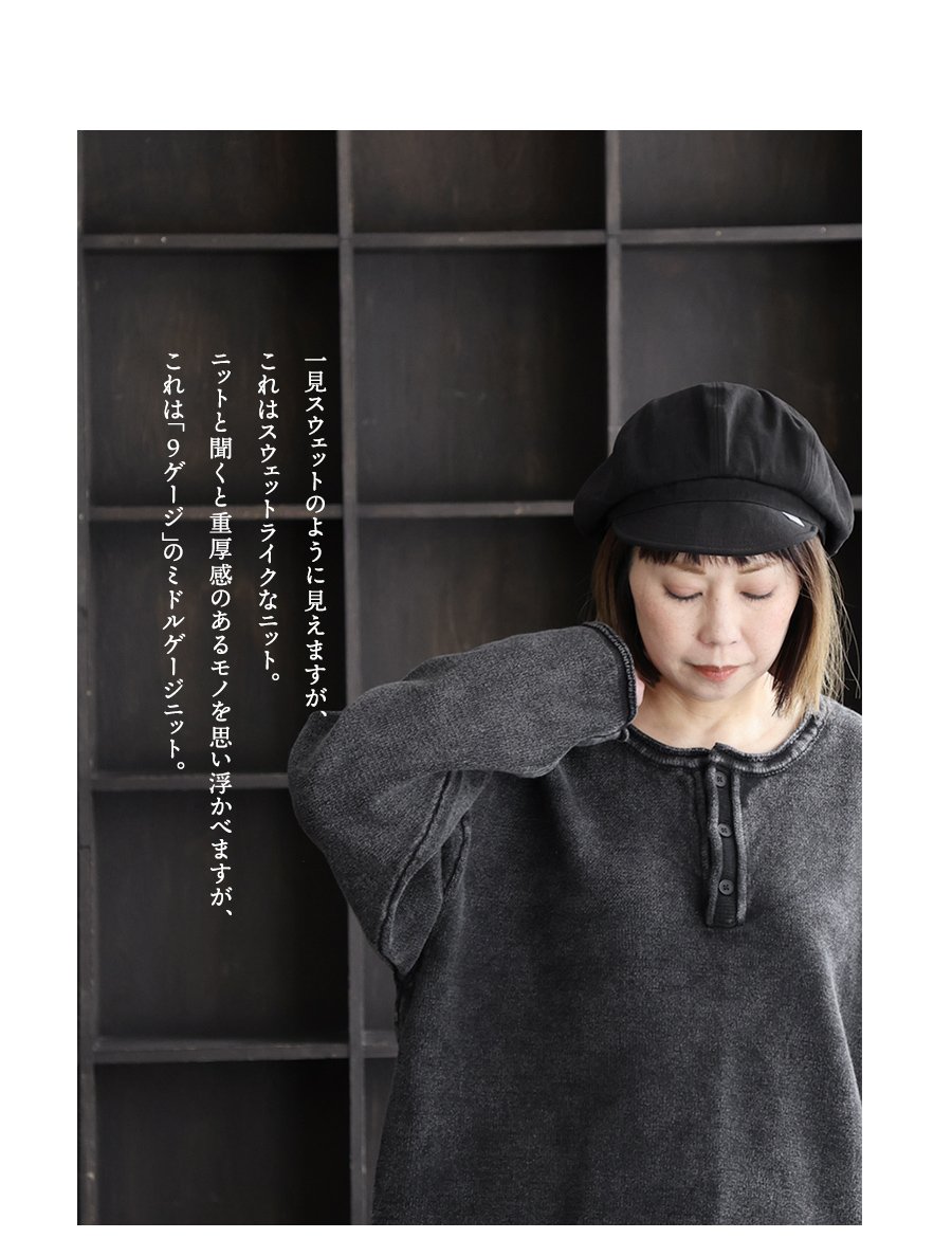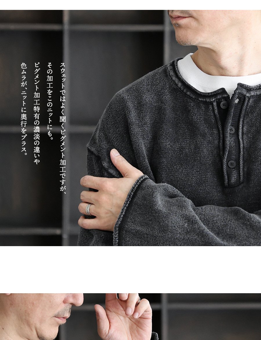 まるでスウェットのような「ニット」。 ニット 長袖 メンズ レディース ヘンリーネック スウェットライク 綿100 コットン 柔らかい 褪せ色 ピグメント 9ゲージ 軽い ゆったり 大きいサイズ カジュアル ヴィンテージ パティ