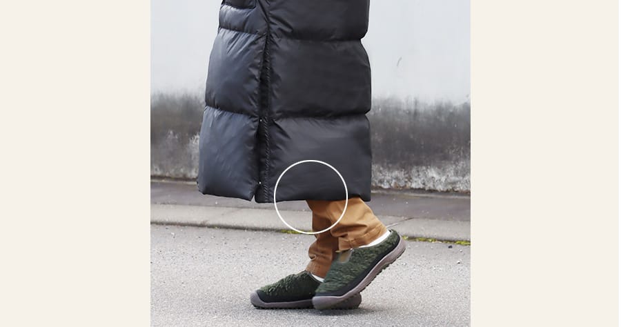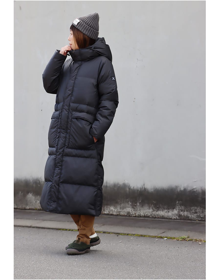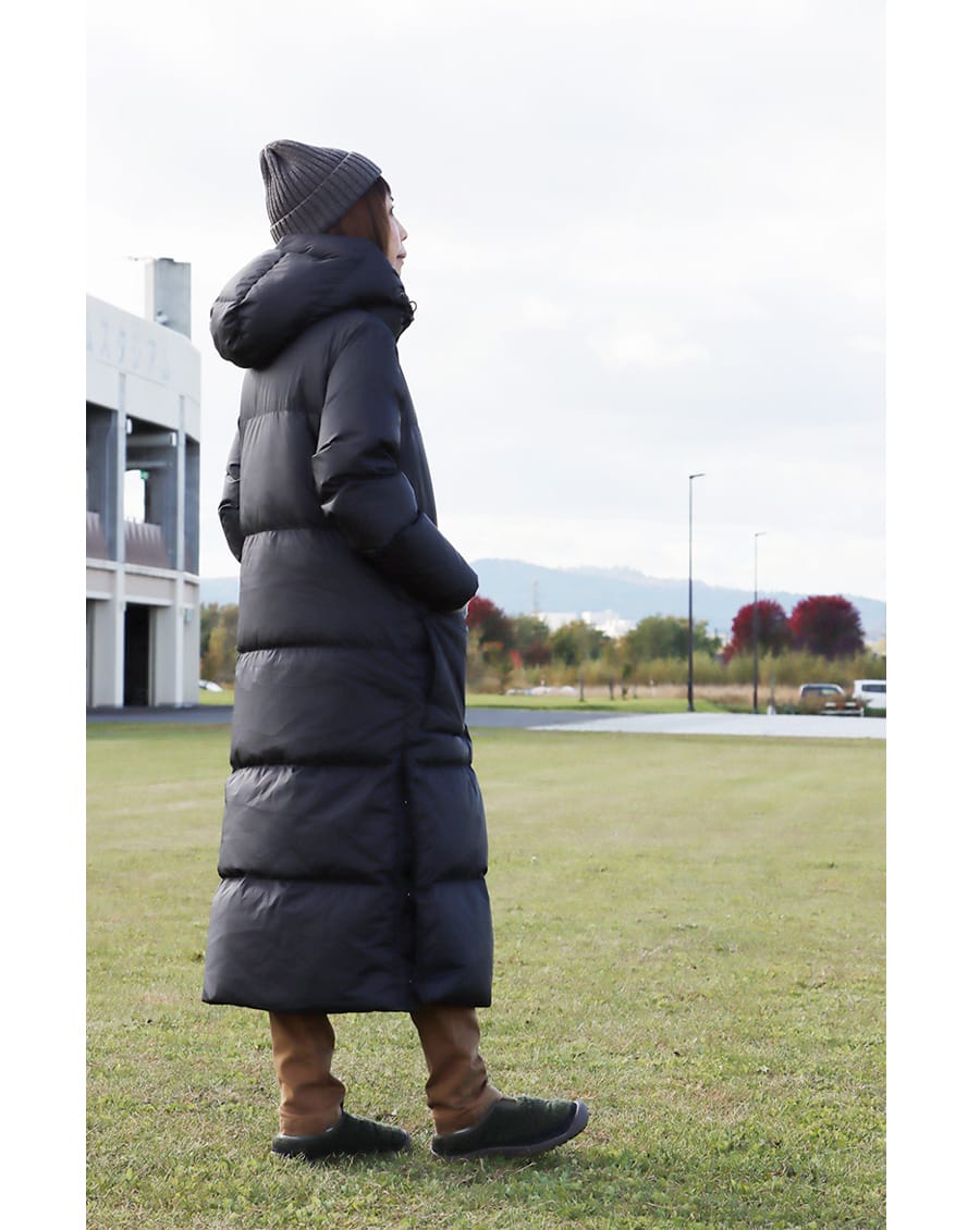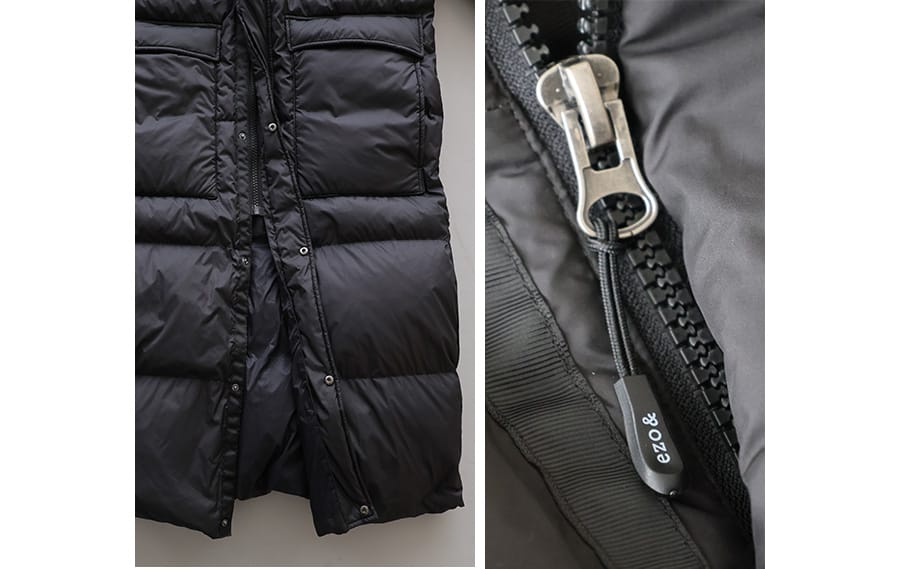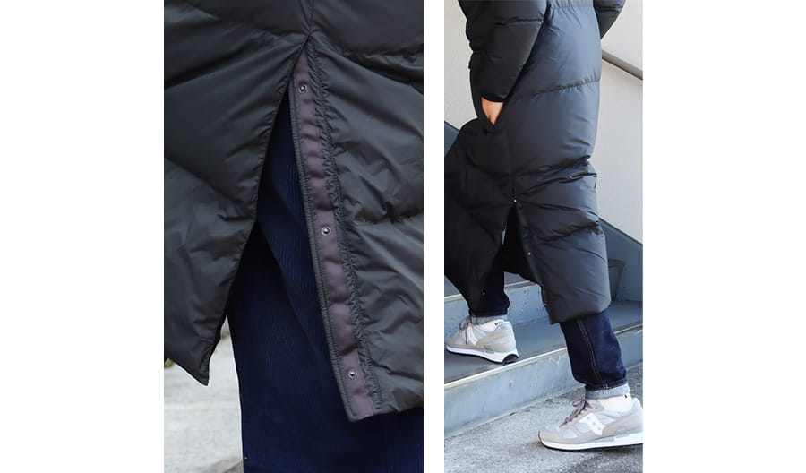 膝までしっかり隠れるロング丈だと、ジップの開け閉めのひと苦労。