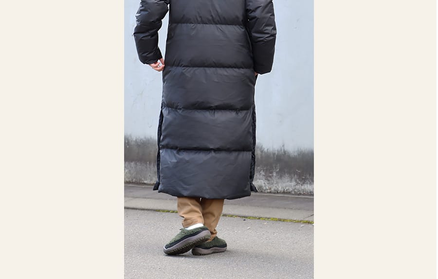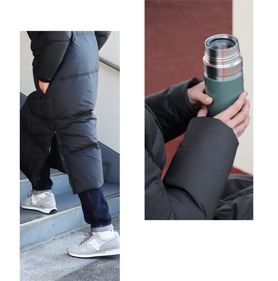 総重量700~1000gのダウンは「軽量ダウン」と呼ばれ、動きやすくて疲れにくいので街着向き。