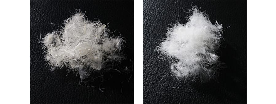 保温性だけを考えると「ダウン90%フェザー10%」などの商品もありますが、そのほとんどが、