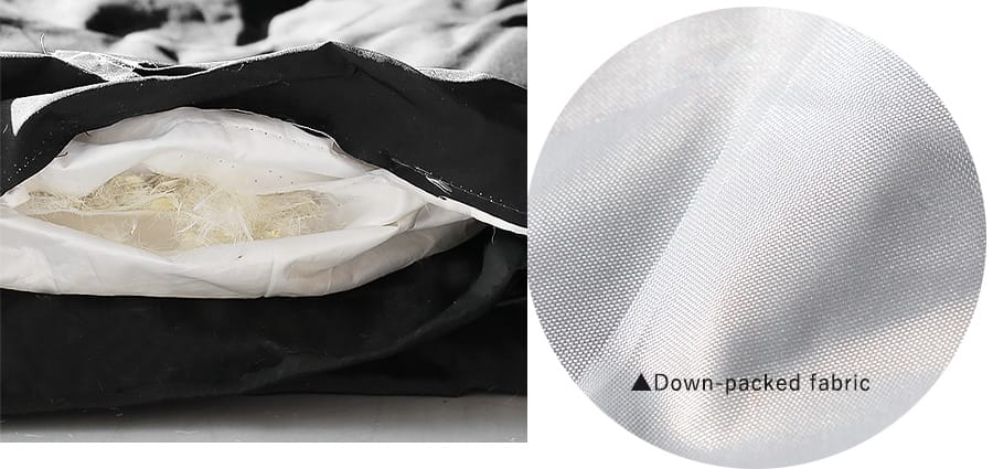 ・羽毛の飛び出しを軽減する気密性の高いダウンパック。