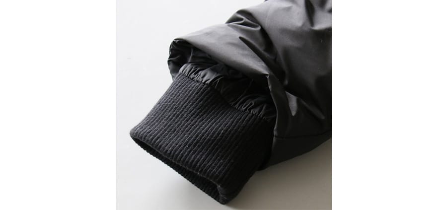 ・防寒性と手首周りのモタ付きを抑えた、袖リブ切り替え。