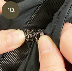 こう見えて実は、ボタンの開け閉めが要らない端留めデザイン。