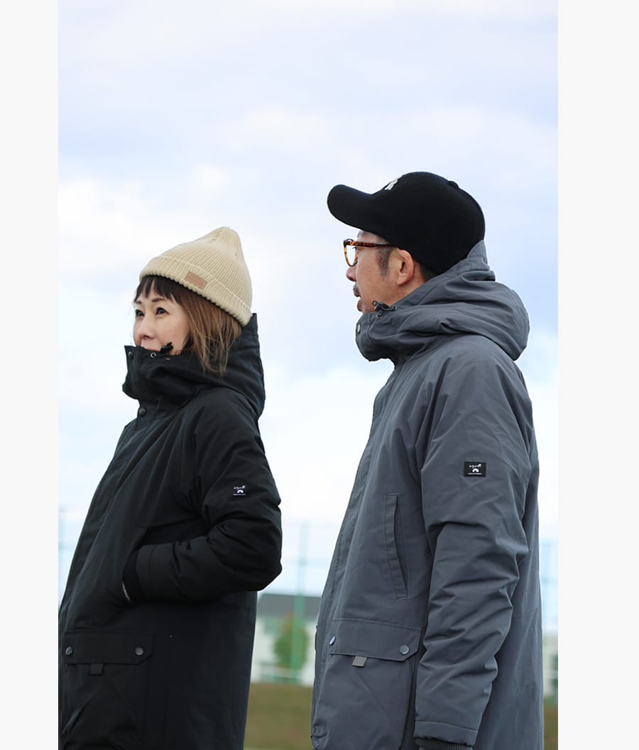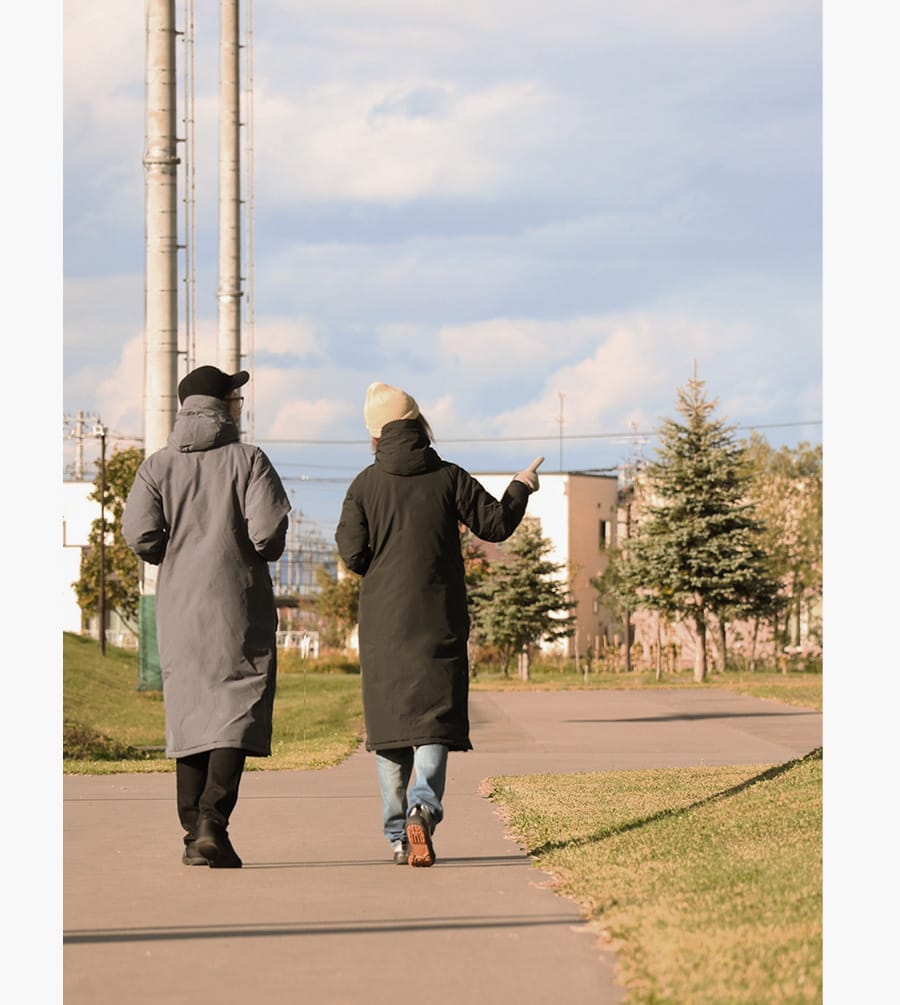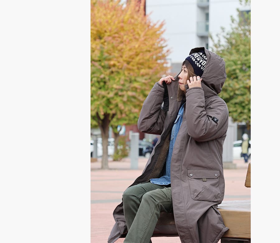 暖かさ・デザイン性に驚く、道民認定のezo&のベンチコート。