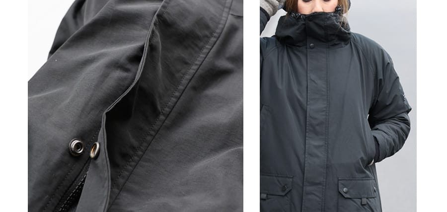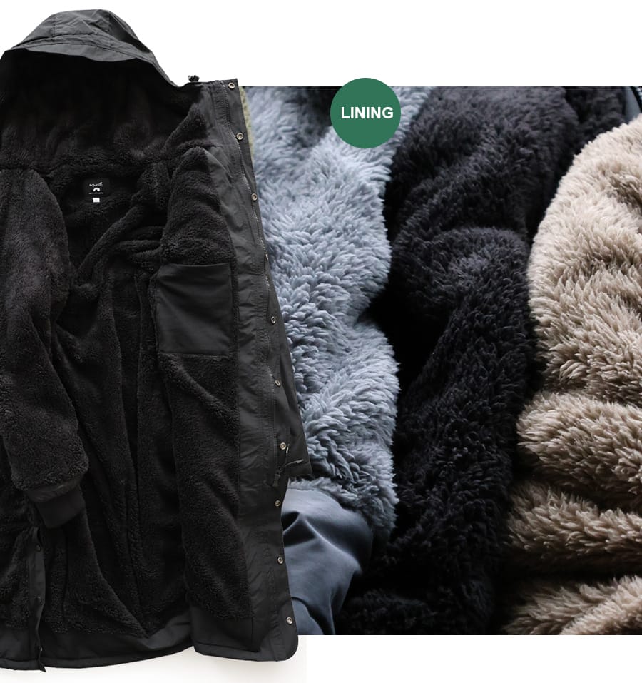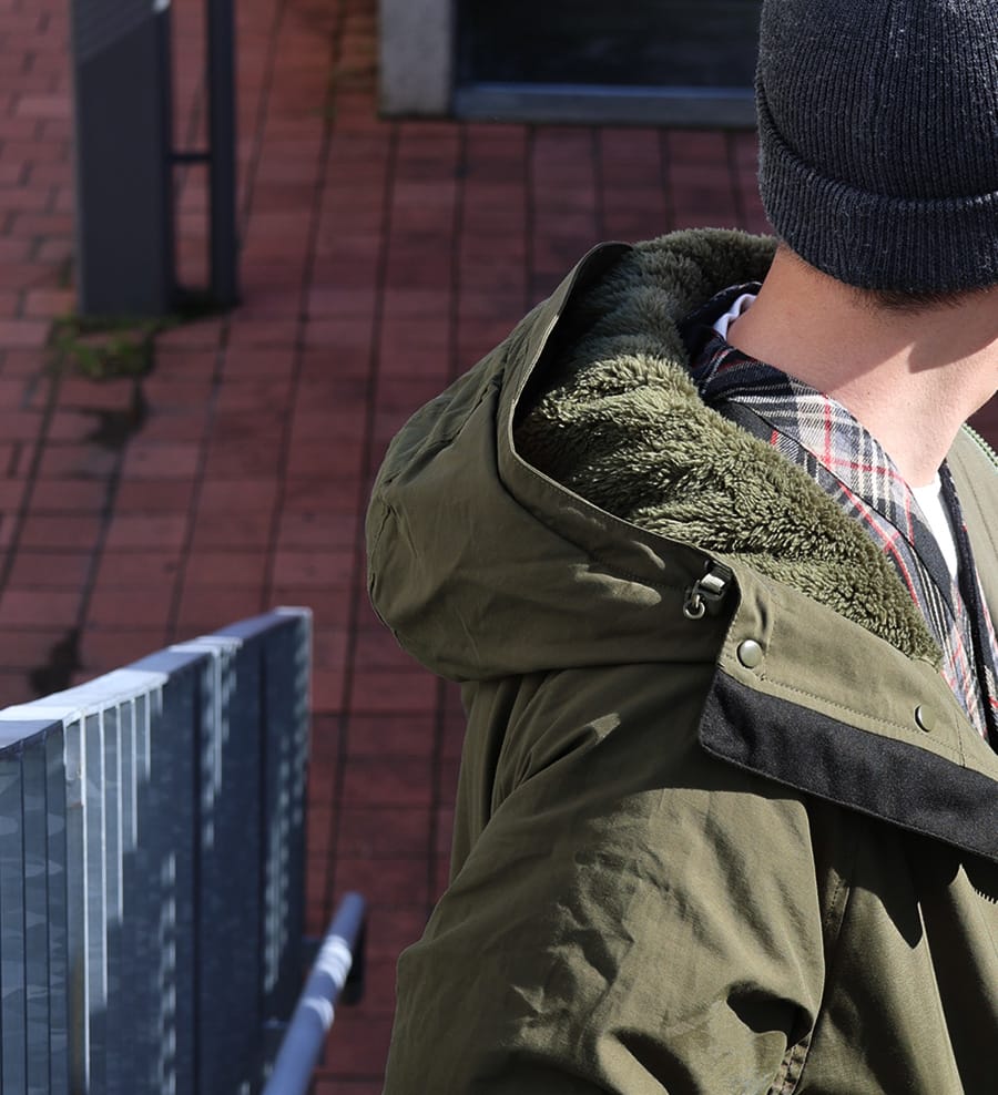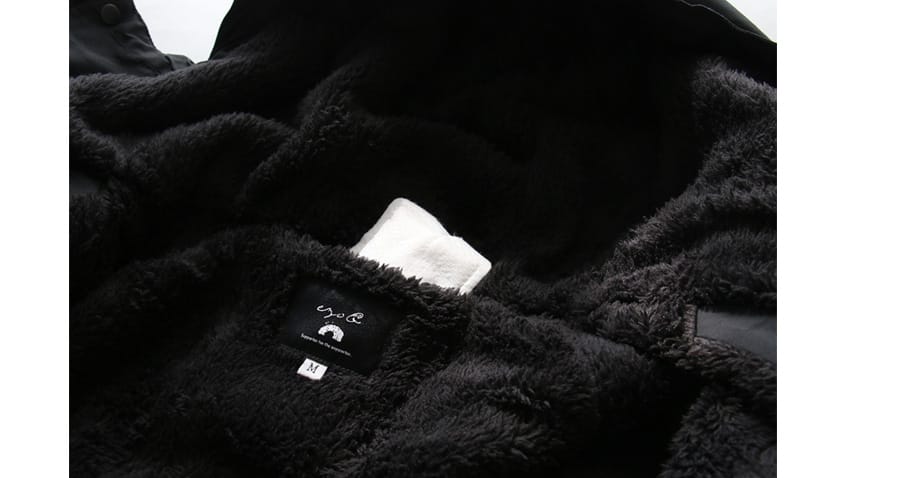 前身頃・後ろ身頃・袖・フードに至る、裏という裏、全てにボアを張ったフルライニング。まるで毛布に包まれているかのような暖かさで、優しく包み込みます。