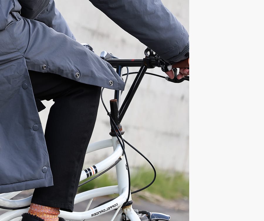 ・座っても突っ張りにくく自転車も漕ぎやすい、ボタン開閉サイドスリット。