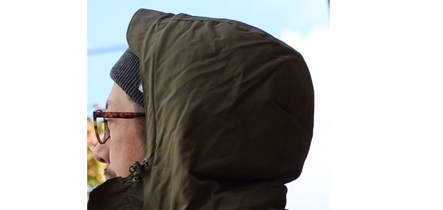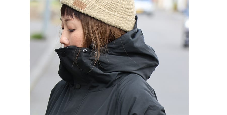 ・体感温度が「+4℃」なツバ付きスタンドネックフード。