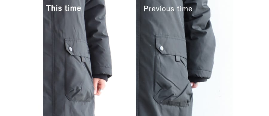 しかも、縫い目を利用したシームポケットなので、アウターを脱いだ時には