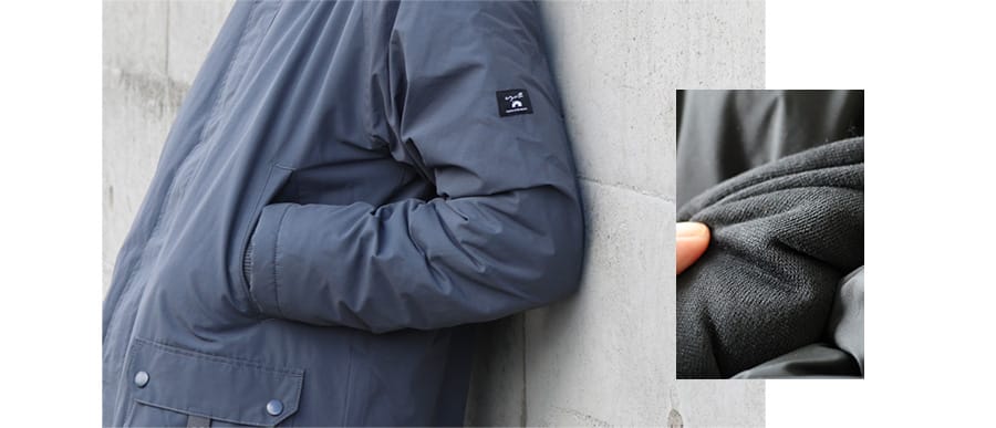 袖口を肉厚なリブ地で切り替えることでフィット感が高まり、隙間風を