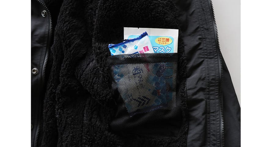 ここにスマホやカギ、予備のカイロなどを入れておけます。