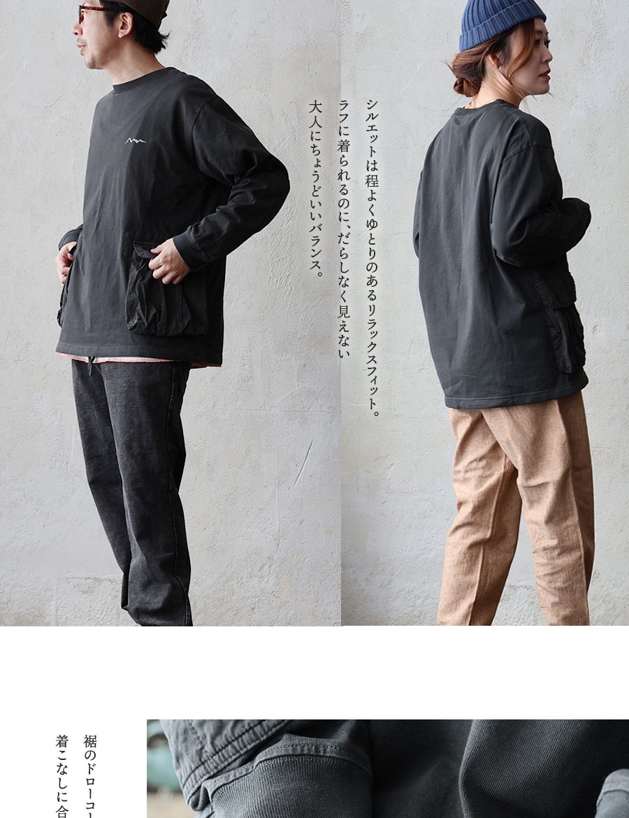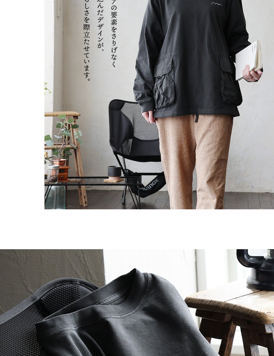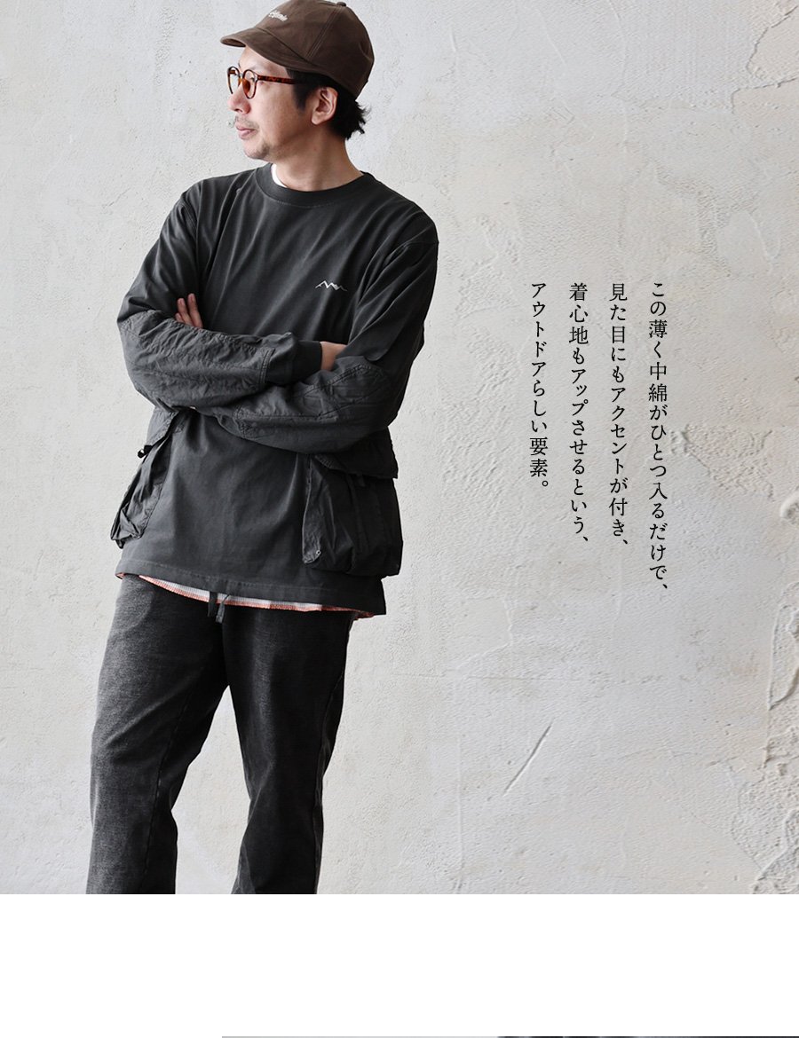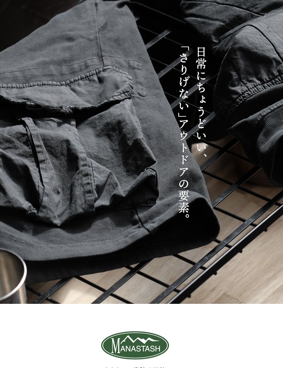 日常にちょうどいい、「さりげない」アウトドアの要素。 MANASTASH マナスタッシュ カットソー メンズ レディース クルーネック 配色 刺繍 ワンポイント ポケット 異素材切り替え 綿100 コットン 天竺 しっかり生地 ゆったり 大きいサイズ カジュアル パティ