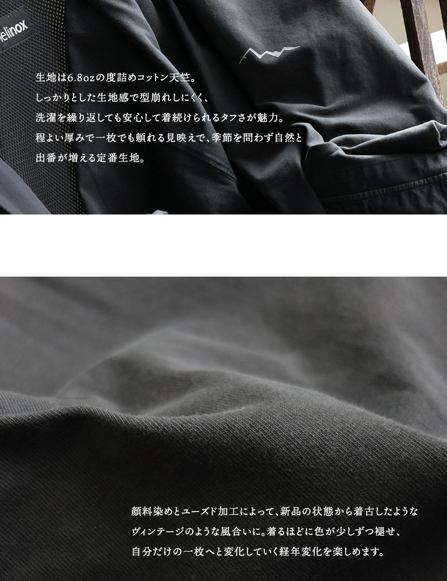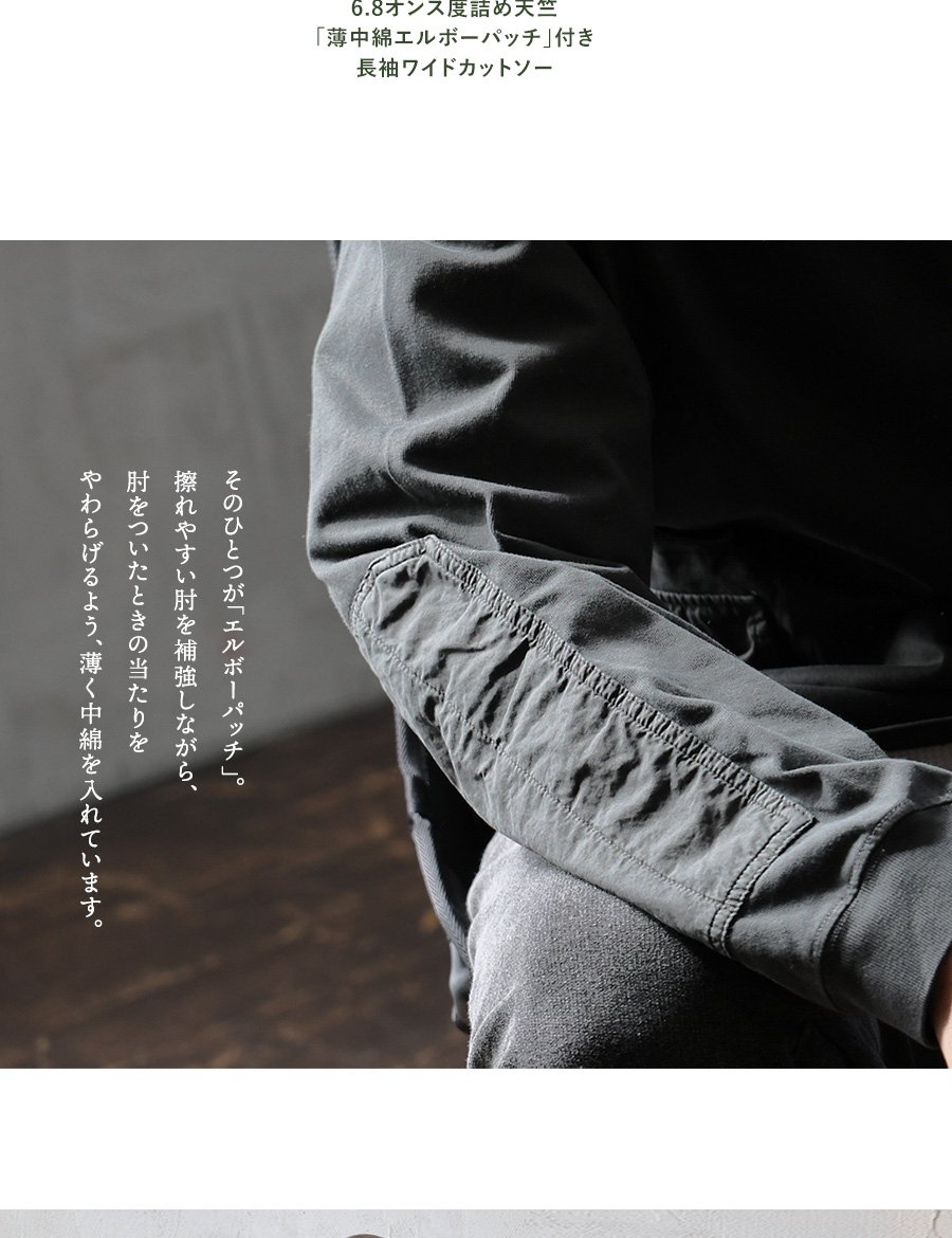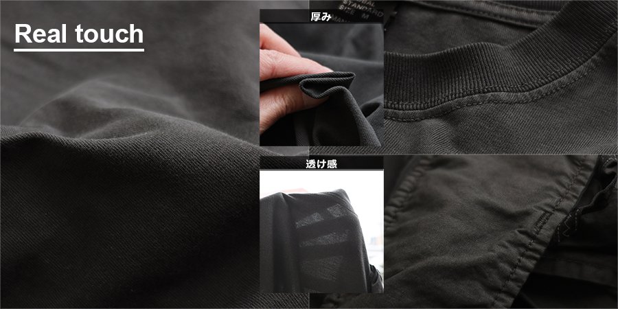 本体:くったりと柔らかく、薄手ながらもぎゅっと目が詰まりタフなコットン100%の天竺地。編地による伸縮性が若干あり、光にかざすとほんのり透け感があります。