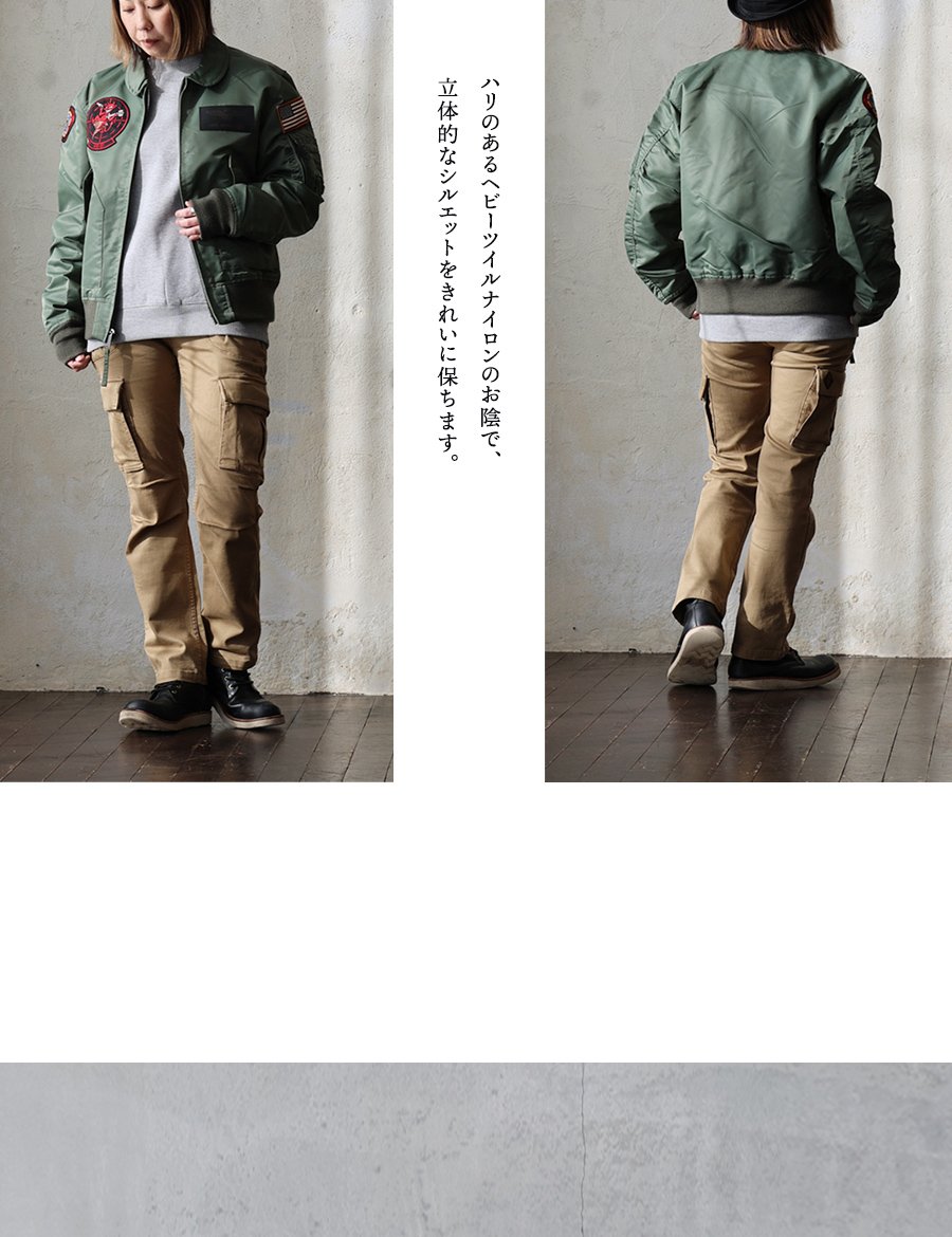 軽快さの先にある、頼もしさと安心感。 AVIREX アビレックス フライトジャケット 長袖 メンズ レディース ナイロン 裏地付き 袖リブ ワッペン ワンポイント しっかり生地 カジュアル ミリタリー 秋 冬 春 パティ