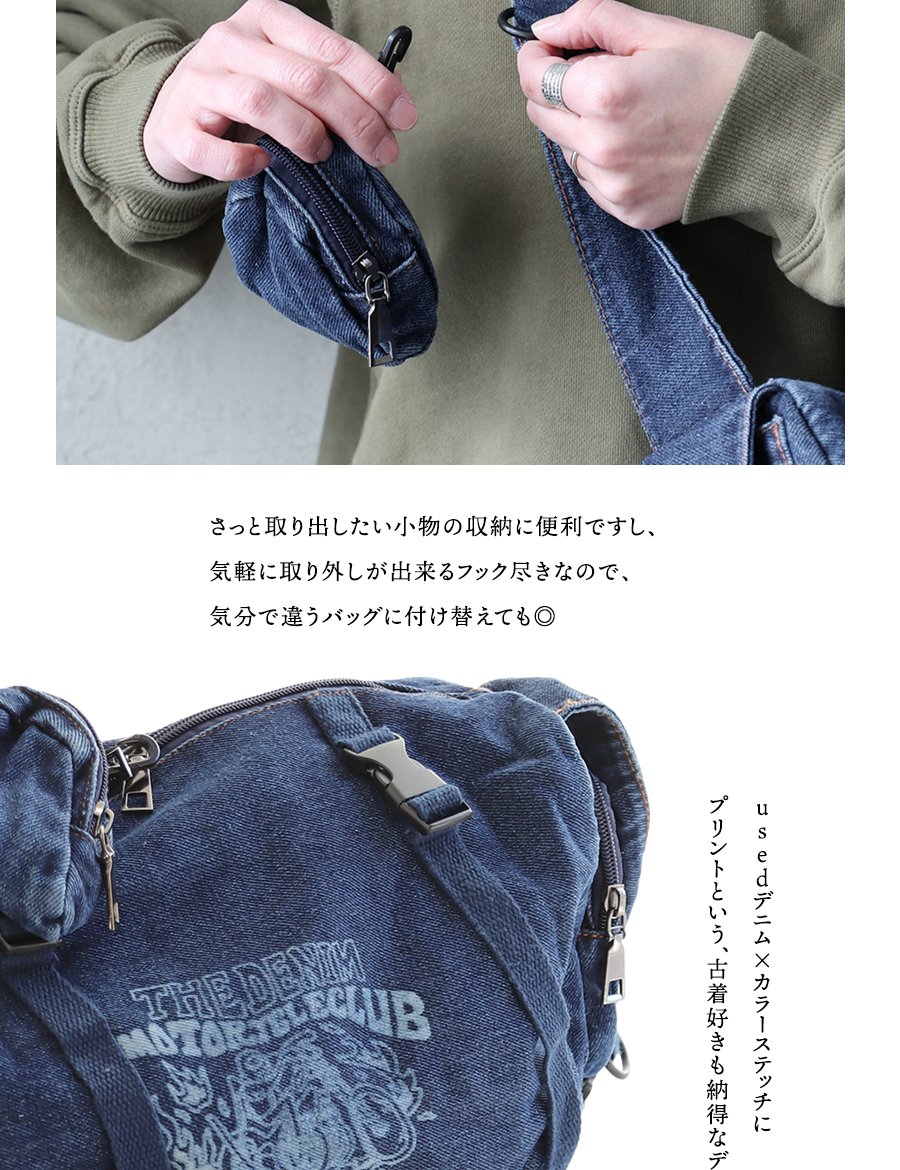 コンパクトでも、頼りになる存在。 バッグ ショルダーバッグ レディース デニム プリント ジップポケット 多収納 たくさん入る ミニポーチ付き お出掛け カジュアル パティ