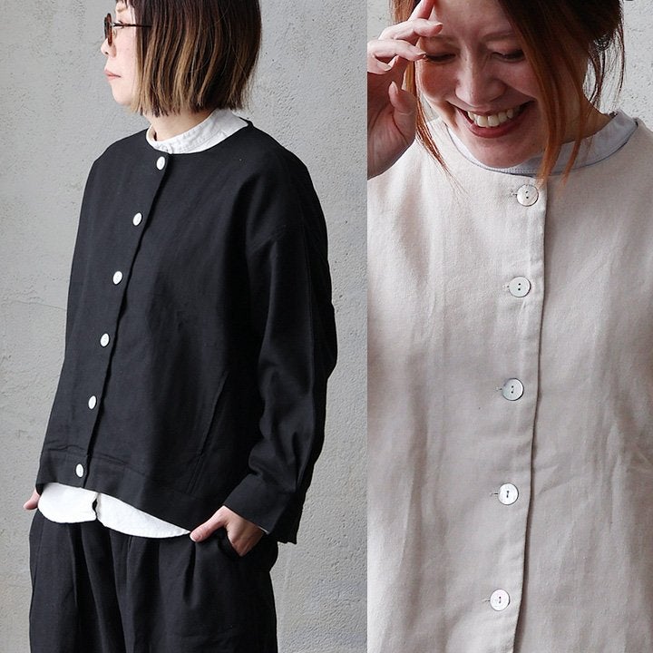 6. ジャケット ノーカラー レディース 綿100 コットン ツイル しっかり生地 無地 ゆったり ドルマン 大きいサイズ 体型カバー セットアップ可 オフィスカジュアル パティ