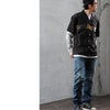 【モデルコメント】中は、Teeやカットソーは合わせやすそうです。程好くゆとりがあって、ボクは着るならこのサイズが良いですね。 【客観的コメント】まもるくらいの体型なら、すっきりとシルエット重視で着るならMサイズ、ゆとりを持って着たいならLサイズって感じだね。