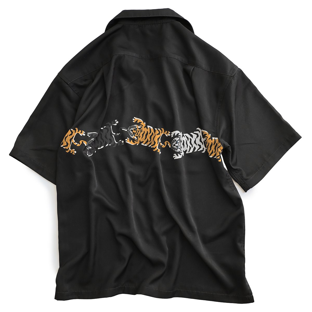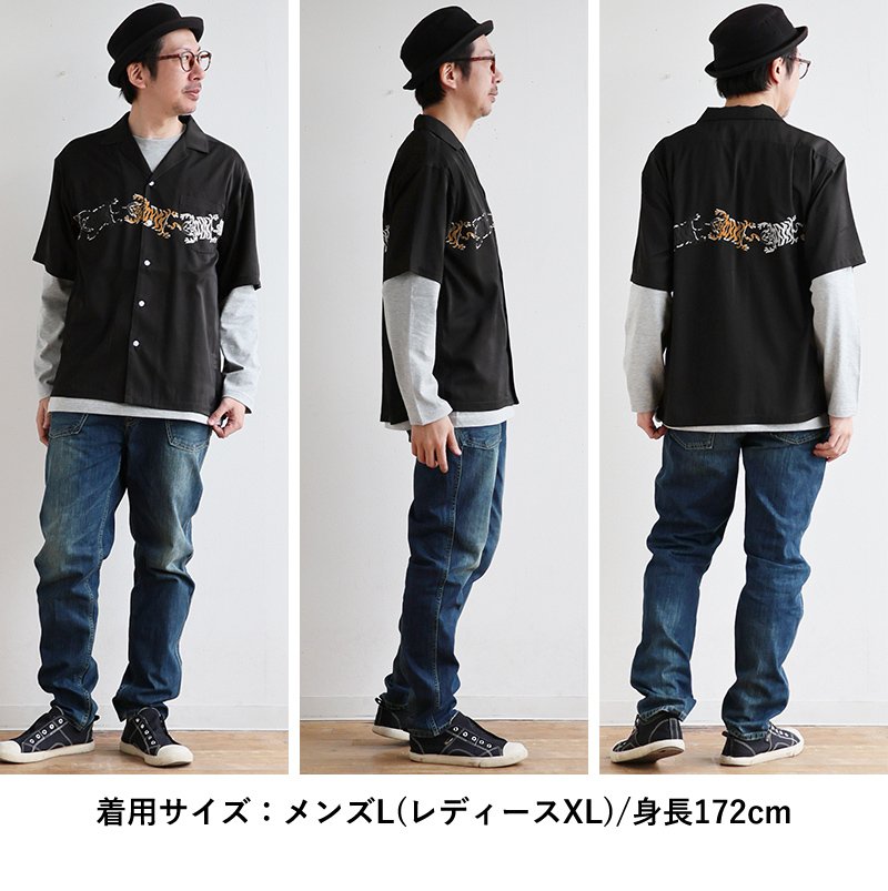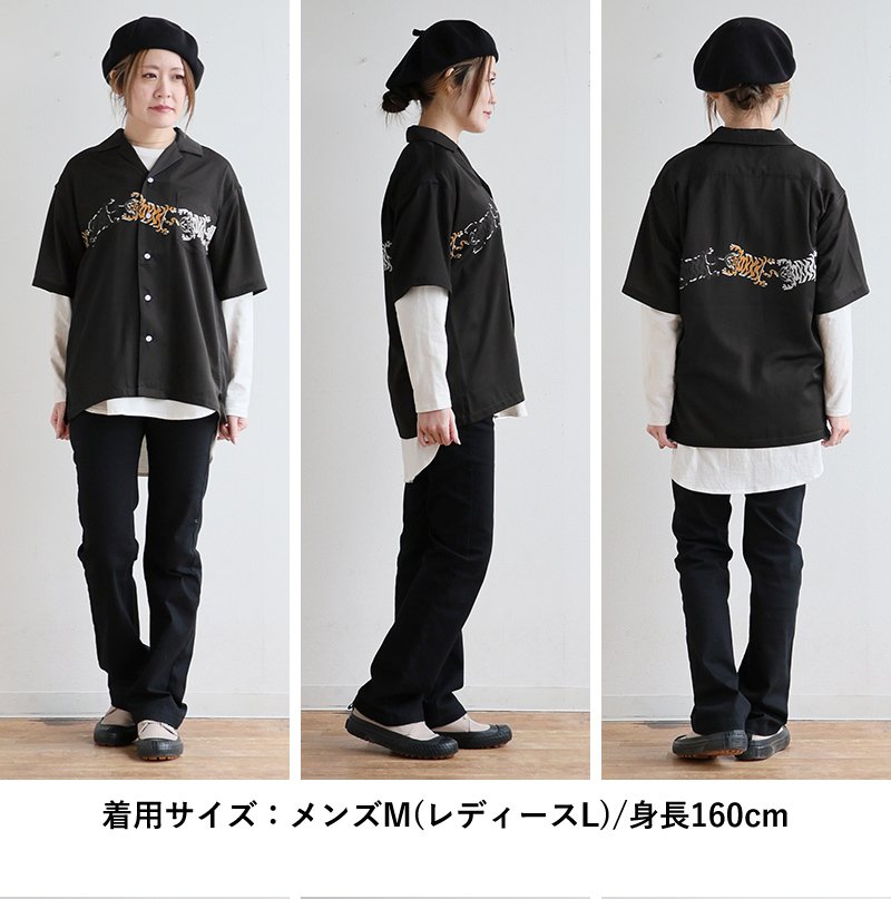 前にも後ろにも、寝そべってます。 シャツ 半袖 メンズ レディース トラ 虎 アニマル チベタンタイガー プリント 薄手 軽い 重ね着 ゆったり 大きいサイズ カジュアル パティ